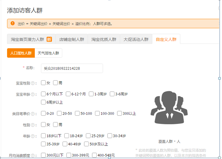 添加人群在我们测好主图和关键词做到10分就可以开了,有的人会觉得人群可以增加点击率为啥不早点开呢?