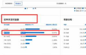 那么数据显示40-80是市场支付金额占比最高的,也就是这个类目低价会更受欢迎,群体是18-25岁、高价产品是355元,根据自己的产品的情况去出适合的定价。