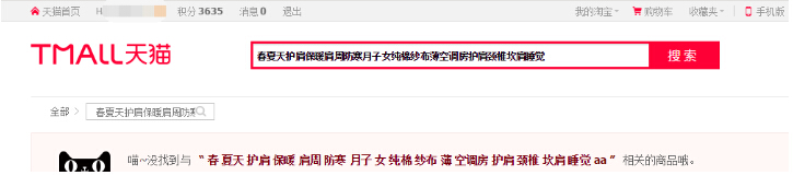 我们在优化关键词权重之前还要了解一个点,淘宝的搜索引擎会对我们的标题进行分词,分词是搜索引擎针对用户提交查询的关键词进行一定的处理,并且根据用户的关键词用各种匹配方法来进行的一张关键词技术处理。而我们优化就是要优化词根,词根怎么看呢?天猫代运营给大家举一个例子,还是我们刚刚搜索过的那个词:护肩颈椎坎肩 睡觉。我们随意选择一款宝贝,把他的标题复制到天猫首页,可以看到宝贝的标题:春夏天护肩保暖肩周防寒月子女纯棉纱布薄空调房护肩颈椎坎肩睡觉。被拆分成一个一个的小的词,像是春、夏天、护肩、防寒等等,而这些词就是词根。
