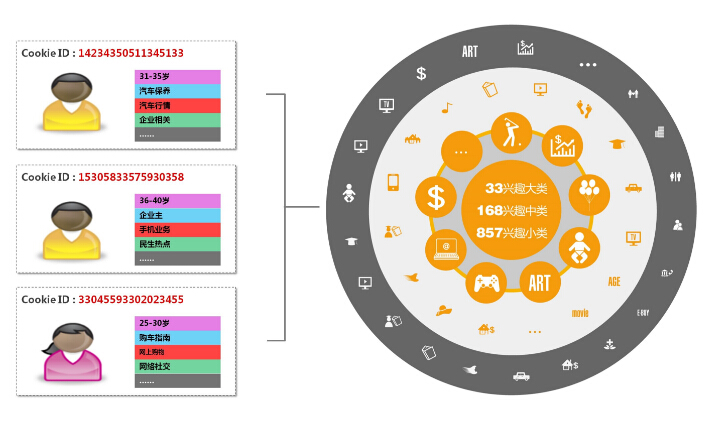 那么,这个到底是怎么实现的呢?这里蕴含着庞大的数据运算方式,淘宝通过运算知道我们的喜好,然后通过对产品对买家打标,给每一个产品和客户进行分类。然后进行差异化推荐。