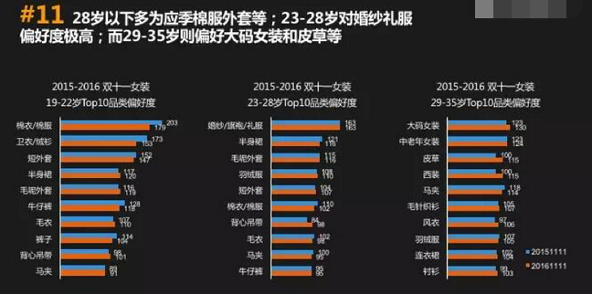 通过对过去几年数据的分析,我们预测今年双11女装销售的增速为:20%到25%。