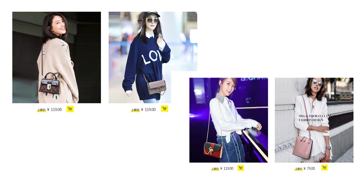 第二种方法呢,就是分清主次。我们在对商品进行展示的时候,应该首先考虑顾客最需要了解的产品信息,只有符合了顾客需求的陈列设计才会有价值。现在有很多卖家,要么是代理多个品牌,要么是货品方面没有形成自己的风格,想当然的认为放在首页上面的商品应该越多越好!因此当顾客进入店铺的时候,就觉得好像进入了一个杂货铺。虽然说陈列的宝贝多,但无法判断出是否有符合自己需求的宝贝,因此在粗略的看了一眼之后,顾客很容易就直接退出,导致了顾客的流失。所以说店铺宝贝陈列的时候一定要主次分明,要有一种统一的色调和风格,只有只有这种整齐统一的规划和明确的色彩显示,才能让进店的顾客立刻就明确店铺的商品定位,既然他们会继续更加深入的浏览。另外就算买家暂时对咱们店铺没有需求,但是店铺有非常强烈的风格特色,导致他们有其他这方面的需求的时候,会很快想起咱们的店铺成为回头客。如图所示的明星同款也算是一种特色,