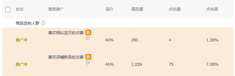 这样测图对于成熟的直通车挺简单的,但是很多新品就不好说了,尤其是今年直通车的加权和质量得分的变动,让更多加入直通车的伙伴们,必须用推广和出高价才能换得更靠前的位置,这样让本来就不好开的直通车变得更加艰难了,而且新品没销量基本很少有人点击造成测图的困难。这里插一句话,手淘搜索流量必然重要,但是现在的淘宝手淘首页流量不可忽视,文章最后也会分享一个新品一周流量上万的技巧,感兴趣的可以重点看一下。所以针对这个情况淘宝前两天在直通车的人群里面加入了一项针对新品的功能:喜欢店铺新品的访客。这个就是所有新品的福音了,经过我的测试这个在溢价相同的情况下带来的展现和点击率是相当可观的了,这样就让我们新品和新车的测图变得简单多了,也是给广大不太懂直通车的一个福音吧,所以大家赶紧行动起来吧,用数据努力找一张点击率高的主图吧,这样才能带来更多的手淘搜索。